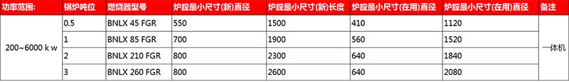 BNLX45-BNLX260低氮燃烧器的性能: